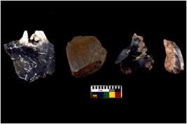 | Description / विवरण | There are n 4 utilized flake cores. There are multidirectional irregular scar pattern on both dorsal and ventral face of the flake cores. One has sharp edges and three have blunted edges. |