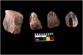 | Description / विवरण | Specimen of flake tools with prominent flaking marks. They are made up of a short flakes with sides trimmed. |