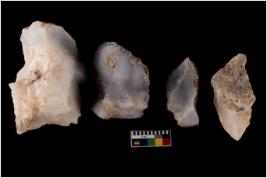 | Description / विवरण | There are n 4 utilized flake cores. There are multidirectional irregular scar pattern on both dorsal and ventral face of the flake cores. One has sharp edges and three have blunted edges. |