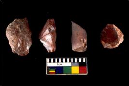 | Description / विवरण | There are n 4 utilized flake cores. There are multidirectional irregular scar pattern on both dorsal and ventral face of the flake cores. One has sharp edges and three have blunted edges. |
