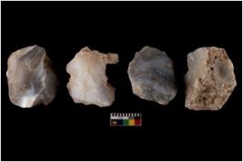 | Description / विवरण | There are n 4 utilized flake cores. There are multidirectional irregular scar pattern on both dorsal and ventral face of the flake cores. One has sharp edges and three have blunted edges. |