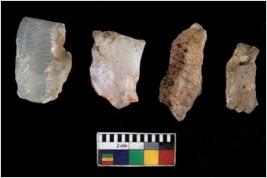 | Description / विवरण | There are n 4 flake cores. All of them are fully fluted flake cores without any trace of crested ridge flakes. Some are tapering at one end and some have sharp edges. |