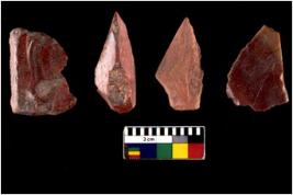 | Description / विवरण | There are n 4 utilized flake cores. There are multidirectional irregular scar pattern on both dorsal and ventral face of the flake cores. One has sharp edges and three have blunted edges. |