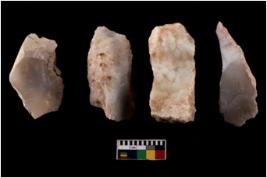 | Description / विवरण | There are n 4 utilized flake cores. There are multidirectional irregular scar pattern on both dorsal and ventral face of the flake cores. One has sharp edges and three have blunted edges. |