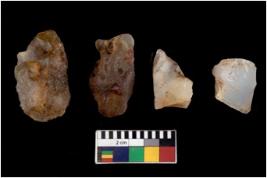 | Description / विवरण | There are n 4 flake cores. All of them are fully fluted flake cores without any trace of crested ridge flakes. Some are tapering at one end and some have sharp edges. |