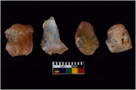 | Description / विवरण | There are n 4 cores; there are multidirectional irregular scar pattern on them. The reverse bulb and platform can be seen. |