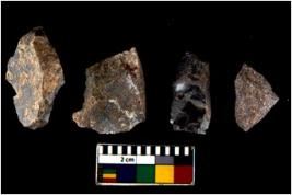 | Description / विवरण | There are n 4 utilized flake cores. There are multidirectional irregular scar pattern on both dorsal and ventral face of the flake cores. One has sharp edges and three have blunted edges. |