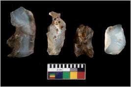 | Description / विवरण | There are n 4 flake cores. All of them are fully fluted flake cores without any trace of crested ridge flakes. Some are tapering at one end and some have sharp edges. |
