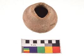 | Description / विवरण | A handmade globular pot with short concave neck, out turned rounded broken rim, well fired. |