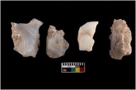 | Description / विवरण | There are n 4 utilized flake cores. There are multidirectional irregular scar pattern on both dorsal and ventral face of the flake cores. One has sharp edges and three have blunted edges. |
