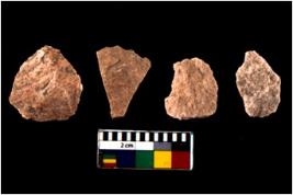 | Description / विवरण | There are n 4 utilized flake cores. There are multidirectional irregular scar pattern on both dorsal and ventral face of the flake cores. One has sharp edges and three have blunted edges. |