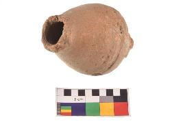 | Description / विवरण | A handmade miniature globur pot with tapering towards base, short concave neck, rounded edge ,coarsed red in colour |