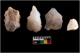 | Description / विवरण | There are n 4 utilized flake cores. There are multidirectional irregular scar pattern on both dorsal and ventral face of the flake cores. One has sharp edges and three have blunted edges. |