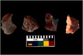 | Description / विवरण | There are n 4 utilized flake cores. There are multidirectional irregular scar pattern on both dorsal and ventral face of the flake cores. One has sharp edges and three have blunted edges. |