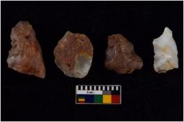 | Description / विवरण | There are n 4 cores; there are multidirectional irregular scar pattern on them. The reverse bulb and platform can be seen. |