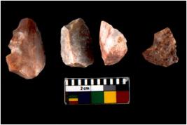 | Description / विवरण | There are n 4 utilized flake cores. There are multidirectional irregular scar pattern on both dorsal and ventral face of the flake cores. One has sharp edges and three have blunted edges. |