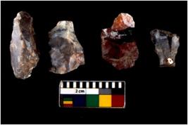 | Description / विवरण | There are n 4 utilized flake cores. There are multidirectional irregular scar pattern on both dorsal and ventral face of the flake cores. One has sharp edges and three have blunted edges. |