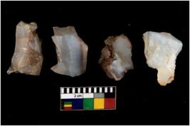 | Description / विवरण | There are n 4 flake cores. All of them are fully fluted flake cores without any trace of crested ridge flakes. Some are tapering at one end and some have sharp edges. |