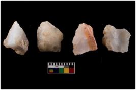 | Description / विवरण | There are n 4 utilized flake cores. There are multidirectional irregular scar pattern on both dorsal and ventral face of the flake cores. One has sharp edges and three have blunted edges. |