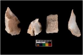 | Description / विवरण | There are n 4 utilized flake cores. There are multidirectional irregular scar pattern on both dorsal and ventral face of the flake cores. One has sharp edges and three have blunted edges. |