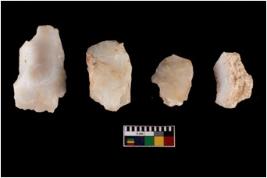 | Description / विवरण | There are n 4 utilized flake cores. There are multidirectional irregular scar pattern on both dorsal and ventral face of the flake cores. One has sharp edges and three have blunted edges. |