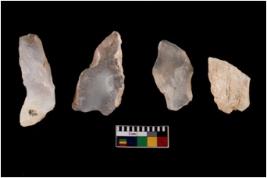 | Description / विवरण | There are n 4 utilized flake cores. There are multidirectional irregular scar pattern on both dorsal and ventral face of the flake cores. One has sharp edges and three have blunted edges. |