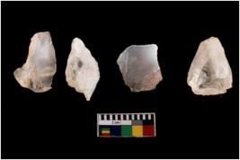 | Description / विवरण | There are n 4 utilized flake cores. There are multidirectional irregular scar pattern on both dorsal and ventral face of the flake cores. One has sharp edges and three have blunted edges. |