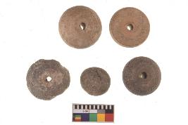 | Description / विवरण | Six beads globular in shape, centrally perforated, well fired. |