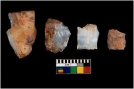 | Description / विवरण | There are n 4 flake cores. All of them are fully fluted flake cores without any trace of crested ridge flakes. Some are tapering at one end and some have sharp edges. |