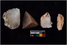 | Description / विवरण | There are n 4 cores; there are multidirectional irregular scar pattern on them. The flake scars are seen on all sides. |