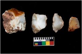 | Description / विवरण | There are n 4 flake cores. All of them are fully fluted flake cores without any trace of crested ridge flakes. Some are tapering at one end and some have sharp edges. |