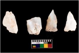 | Description / विवरण | There are n 4 utilized flake cores. There are multidirectional irregular scar pattern on both dorsal and ventral face of the flake cores. One has sharp edges and three have blunted edges. |