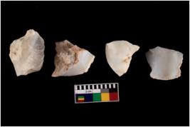 | Description / विवरण | There are n 4 utilized flake cores. There are multidirectional irregular scar pattern on both dorsal and ventral face of the flake cores. One has sharp edges and three have blunted edges. |