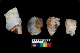 | Description / विवरण | There are n 4 flake cores. All of them are fully fluted flake cores without any trace of crested ridge flakes. Some have flat base. Some have blunted edges and few have round edges. |