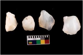 | Description / विवरण | There are n 4 utilized flake cores. There are multidirectional irregular scar pattern on both dorsal and ventral face of the flake cores. One has sharp edges and three have blunted edges. |