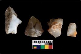 | Description / विवरण | There are n 4 flake cores. All of them are fully fluted flake cores without any trace of crested ridge flakes. Some are tapering at one end and some have sharp edges. |