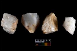 | Description / विवरण | There are n 4 utilized flake cores. There are multidirectional irregular scar pattern on both dorsal and ventral face of the flake cores. One has sharp edges and three have blunted edges. |