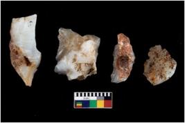 | Description / विवरण | There are n 4 flake cores. All of them are fully fluted flake cores without any trace of crested ridge flakes. Some are tapering at one end and some have sharp edges. |