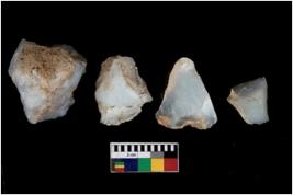 | Description / विवरण | There are n 4 flake cores. All of them are fully fluted flake cores without any trace of crested ridge flakes. Some are tapering at one end. Some have flat base and few have round edges. |