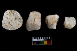 | Description / विवरण | There are n 4 utilized flake cores. There are multidirectional irregular scar pattern on both dorsal and ventral face of the flake cores. One has sharp edges and three have blunted edges. |