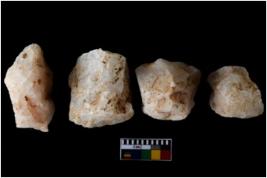 | Description / विवरण | There are n 4 utilized flake cores. There are multidirectional irregular scar pattern on both dorsal and ventral face of the flake cores. One has sharp edges and three have blunted edges. |