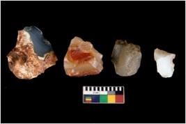 | Description / विवरण | There are n 4 flake cores. All of them are fully fluted flake cores without any trace of crested ridge flakes. Some are tapering at one end and some have sharp edges. |