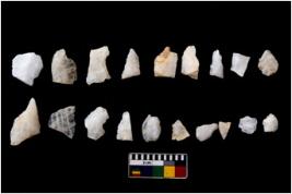 | Description / विवरण | There are n 20 flakes tool; there are multidirectional irregular scar pattern on them; made of short flakes and few have tapering edges. |