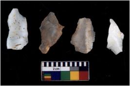 | Description / विवरण | There are n 4 of utilized worked cores and have multidirectional scar pattern. Three are tapering at one end. |