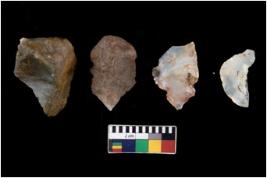 | Description / विवरण | There are n 4 flake cores. All of them are fully fluted flake cores without any trace of crested ridge flakes. Some are tapering at one end and some have sharp edges. |