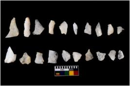 | Description / विवरण | There are n 20 flakes tool; there are multidirectional irregular scar pattern on them; made of short flakes and few have tapering edges. |