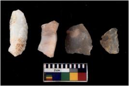 | Description / विवरण | There are n 4 of utilized worked cores and have irregular scar pattern on both dorsal and ventral sides. One has a flat base. |