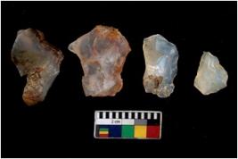 | Description / विवरण | There are n 4 flake cores. All of them are fully fluted flake cores without any trace of crested ridge flakes. Some are tapering at one end and some have sharp edges. |
