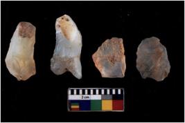 | Description / विवरण | There are n 4 of utilized worked cores and show multidirectional irregular scar pattern on both dorsal and ventral sides. Three are tapering at one end. |