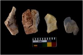 | Description / विवरण | There are n-4 of utilized flake cores. There are multidirectional irregular dominant scar pattern on both dorsal and ventral face of the cores. |